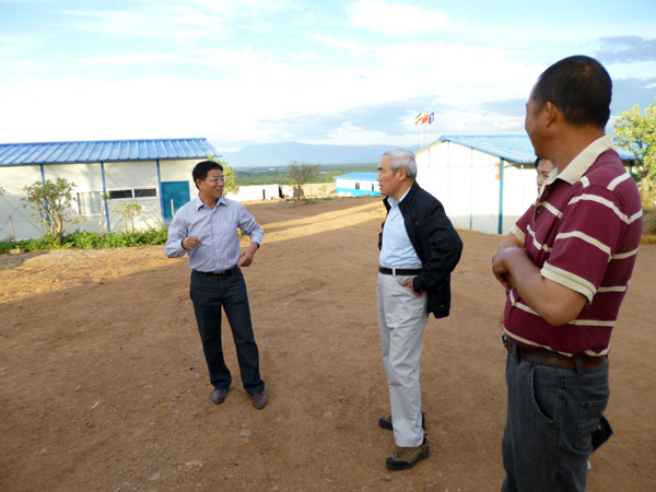 2013年10月5日,中国驻埃塞俄比亚大使解晓岩、经赞处参赞钱兆刚等一行赴我公司埃塞KURAZ浇灌项目视察指导事情。我公司副总司理聂玉和率项目组及驻埃服务办事情职员热情接待相识晓岩大使一行,并汇报了我公司在埃塞生长及KURAZ项目建设希望情形。