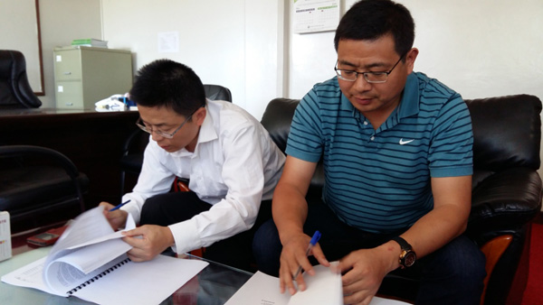 2015年7月8日, 肯尼亚分公司总司理贺翔,在污水处置惩罚项目唐志兵司理的陪同下,与业主南维多利亚湖水利委员会签署了在建污水项目的增项条约。增项工程工期为6个月,至今年年底竣事,主要包括两个熟化池,数公里管线,数个公共茅厕,以及两条进场路等。详细条约条款参照原条约执行。此次增项条约的签署标记着我司在建污水项目获得了业主单位的一定,表达了业主方愿意与我司恒久相助的意向,为以后公司在肯尼亚西部市场的开发涤讪了更扎实的基础。