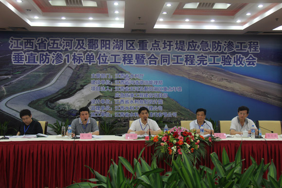 2011年5月8日,我公司承建的江西省五河及鄱阳湖区重点圩堤应急防渗处置惩罚工程笔直防渗1标单位工程暨条约工程完工验收会在南昌市召开。省水利厅厅长孙晓山,厅纪委书记李东江,副厅长文林、厅总工张文捷,省发改委、省财务厅、省水利厅有关处室及有关单位认真人,南昌市水利局等向导出席了聚会。